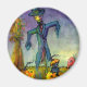 Top hat scarecrow, pumpkins and jumpin' jack cat scene for fridge magnet!