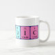 Frederic spelled out as F Re D Er I C (Fluorine Rhenium Deuterium Erbium Iodine Carbon) on a mug for the scientist in you.