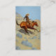 An iconic image, the pose here is one of those most associated with Remington. He was one of the first to perfect the painting of riders on horses in motion such as seen here.