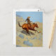 An iconic image, the pose here is one of those most associated with Remington. He was one of the first to perfect the painting of riders on horses in motion such as seen here.