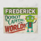 A funny Frederick Maryland vintage travel design featuring a friendly robot with fun retro style text that says, "Frederick, Robot Capital of the world!"
