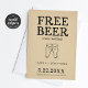 "Free Beer (and a wedding)." Easily personalize this save the date with hand drawn beer toast doodles for your wedding announcement.
