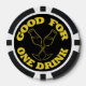This free drink token is made from two wine glasses with the words "Good for one drink" along the border. One the back of this chip you may customize to add your tavern information