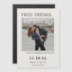 Fun and casual Save the Date announcement featuring "Free Drinks" in a fun script. Announce to your friends and family that you are getting married! Customize with your information and photo.