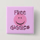 A big happy face in soft pink is surrounded by text that reads FREE GIGGLES. It's like the old FREE HUGS t-shirts of the past, only cuter and more fun for baby or little one. Makes a great gift for a baby shower or for new parents. Also available in soft green and light blue design in our shop. Design concept copyright Scarebaby Design and OhMyBaby!