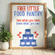 Featuring bold red and blue lettering and a playful stack of canned goods surrounded by hearts, this sign is easy to read and welcoming for all ages. Durable and customizable, it’s ideal for personal or community use.