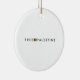 Lightweight, smooth, pure white ornament with nice sheen. Perfect size to be seen from across the room ... and to attract closer inspection! Price was great for ordering enough for the whole family! Clear, bold black design just as requested. Matches the order exactly. Just so nice!