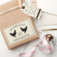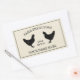 Free range farm fresh eggs rustic chicken drawing Rectangular Sticker. Vintage design with farm animal silhouette and rustic typography template. Add your own homestead name or quote. Great for egg seller, poultry meat seller, farming business, restaurant, market shop, local grocery store, butchery and more. Customizable logo colors. Rectangular shape with eggshell color background and border.