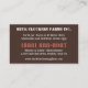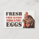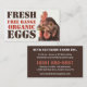 Here's an eyecatching business card for egg producing chicken farmers! A vivid rusty orange colored Rhode Island Red heritage point of lay hen, with sharp untrimmed beak as birds usually are kept when in a spacious, free range, family farm type setting and not in an overcrowded commercial eggery. Rich brown and orangey red colored stencil crate style lettering announces that you have fresh organic free range eggs, and the reverse side has numerous text fields for you to customize with your own personal and business information. This is the standard sized business card. Other sizes and designs available in the store. www.zazzle.com/countrycorner