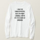 I love this shirt. I had written to the artist asking her if this picture was available on a shirt, and she wrote me back telling me where I could find the shirt. These shirts can be custom made to have a different saying. I loved this saying and went with it. The artist wrote me back later to tell me that she had seen my order go through. How's that for service? Pretty special. It's just as displayed. Perfect!