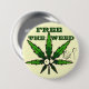 A green leaf and sayings free the weed and a thumbs up custom button.