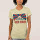 The material is a great quality that is hard to find with most tee shirts. Fabric was not see-through or thin at all, but was also very soft and comfortable. The shirt description states that it runs a little small, so I sized up one size for a perfect fit! I would definitely buy this type of tee shirt again because I love the fit and high quality fabric that I cannot find anywhere else. The printing was perfect and just as pictured. Loved the cute quote and really enjoy the tee in both the quality and design. I love quirky typography designs and funny quotes and I am extremely pleased with the overall quality and value I get at Zazzle!