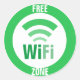 Free WiFi sign icon round sticker. Free Wi-Fi access area sign with green wireless WiFi rays and green round border with fully customizable texts "Free", "Wi", "Fi" and "Zone" stickers. These WiFi stickers on a sheet are fully customizable, add your personal texts and images! Great small warning sign sticker to show your valued guests that you provide free WiFi internet access.