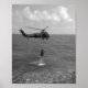 This photo depicts the recovery of the Freedom 7 (MR-3) capsule by a U.S. Marine helicopter. The MR-3 mission successfully placed the first American astronaut, Alan Shepard, in space for 15-1/2 minutes and returned safely to Earth on May 5, 1961.