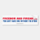 Freedom and Firearms Not One Without The Other Bumper Sticker