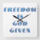 Freedom Is God Given, Blue Square Wall Clock