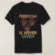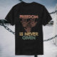 Introducing our empowering design, a tribute to Juneteenth and African American resilience. Three bold African American handprints symbolize strength, unity, and heritage, while the powerful statement "Freedom Is Never Given" resonates with the enduring struggle for equality. This design encapsulates the spirit of liberation and celebrates the journey towards justice. Elevate your wardrobe with this emblem of empowerment and join the movement for change.