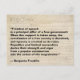 Text: "Freedom of speech is a principal pillar of a free government: When this support is taken away, the constitution of a free society is dissolved, and tyranny is erected on its ruins. Republics and limited monarchies derive their strength and vigor from a popular examination in the actions of magistrates."-- Benjamin Franklin