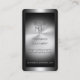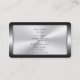 Metallic series: A stylish business card template for a Freelance Journalist. The design uses a polished steel-look background and frame. Just change the monogram to your initials, then customise with the rest of your details and give a strap line, quote or personal message for that professional feel.