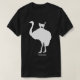 Funny t-shirt design featuring a silhouette of a cat standing on the back of an ostrich, with the word 'freeloader' beneath.