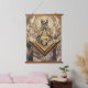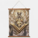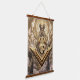 The polyester fabric displayed many wrinkles and several sharp creases throughout. At the bottom of the tapestry, I noticed a bulge in the fabric because it was not pulled tight enough before being connected to the wooden boards. It took me over an hour to spay water on the tapestry before putting it on an ironing board where I used a warm iron over a polyester cloth to remove the wrinkles and creases in the material. I was able to get out the wrinkles and creases that made that tapestry look as beautiful as its picture.