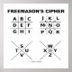 No need to be a cryptographer to enjoy this poster featuring the Freemason's cipher, also known as the pigpen cipher, masonic cipher, or Rosicrucian cipher. Make others do a double-take over this geometric simple substitution cipher which exchanges letters for symbols that are fragments of a grid. Coders and all who enjoy cryptanalysis will enjoy!