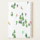Cool winter themed skier pattern design with skiers skiing down alpine ski resort slopes among snow covered fir trees in alps. Freeride skiers are wearing colorful vintage retro ski suits, skiing downhill with skis on a white snowy mountain landscape background. Wonderful winter sport fun gift for a skier in your circle of friends, co-workers or family. Whimsical skiers artwork illustration design. Skiers skiing ski home decor, Ski team, ski coach gift. Skiers skiing ski skis wrapping paper gift. Personalized skier gift
