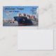 A large ocean going ship loaded with containers gets ready to leave a busy port.