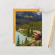 This postcard features a view of a freight train moving through Morant’s Curve, Improvement District No. 9 in Alberta, Canada. Photo credit: Andy Holmes, 2020.