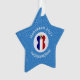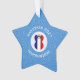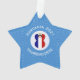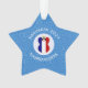 Angel wears the red, white, and blue flag of France on the Hanukkah decor item of a star shaped ornament. The Hanukkah French angel is found inside a white circle of squiggly squares surrounded by a background of blue squiggly squares. Designed especially for families with multiple religions. Add your own text or customize with the year and personalize with a name.
