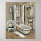 © Silvia Vassileva / Wild Apple. This image features a bathroom with a bathtub, a white chair, and other decorations in neutral colors. There is also a plant as well as other bathroom decorations on the image.