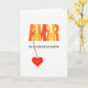 Send love in French to someone special on their birthday. This bright modern design has AMOUR in orange-yellow colored capital letters with a pattern of white flowers. There is a red heart hanging from the A, and the greeting is "bon anniversiare" ("happy birthday"). Edit the text on the heart to personalize the card. The message inside can be edited too, or you can use the suggested "Je te souhaite un joyeux anniversaire. Que chacun de tes rêves devienne réalité!" ("I wish you a happy birthday. May all your dreams come true".)