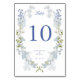 This soft watercolor florals table number card features delicate French blue flowers, perfect for a romantic, vintage, or garden-themed wedding. It offers a personalized, elegant touch to your celebration. Customizable text and colors make it a timeless, artistic choice for your special day.