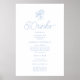 Perfect for grandmillennial brides and lovers of the Old Money aesthetic, this menu sign blends soft French Blue florals with heirloom-inspired design for a polished reception look. Ideal for signature cocktail displays, garden tent receptions, or bridesmaid brunch bars. Style with ivory linens, blue hydrangea arrangements, and silver bar trays for a cohesive setting. Personalize to coordinate with your full wedding suite.