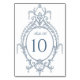 French Blue Ornate Baroque Wedding Table Number