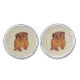 French Bulldog drawing - golden dog - on Round Cufflinks, Silver Plated