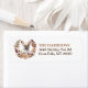 The left side of these return address labels feature a portrait of an adorable brown French Bulldog. The image is enclosed within a pretty autumn floral and leaf wreath in tones of brown, tan, and cream. Your custom text is in brown and gold brown at the right.