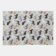 Cute French Bulldog with with black, fawn, white, gray and brindle coat colors, pawprints and dog bones on a light Gray background.