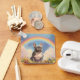 A personalized Frenchie French Bulldog memorial keychain with a painting of a happy French Bulldog on a serene heavenly hill with a beautiful rainbow overhead. Symbolizing the French Bulldog has passed the rainbow bridge to doggy heaven. Personalize it with your own French Bulldog dog's name or any other text on the back side of the keychain. Makes a wonderful memorial gift for any Frenchie French Bulldog dog lover.