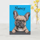 An adorable French Bulldog greeting card for birthdays, dog birthdays, dog memorials, or any occasion for Frenchie dog lovers. Personalize it with your own name or text.