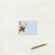 Personalized pop art french bulldog post it notes featuring a cute red fawn frenchie on a pastel blue background that can be changed to any color, and your name.