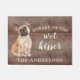 Funny beware of the wet kisser" French Bulldog Dog door mat set on a rustic faux background. Visit our shop to view a large assortment of dog breads