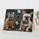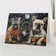 Unleash the spooky spirit with this eerie Halloween design featuring a pack of dogs under a dark, moonlit sky, surrounded by flying bats and glowing pumpkins. Perfect for those who love a touch of frightful fun with their furry friends!