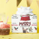 The repeated pattern on this cute Christmas wrapping paper is an image of an adorable French Bulldog peeking out from a red and white Holiday gift bag. Behind him is a sprig of holly and red berries. A red and black bullfinch bird is about to land. Stylized red and black buffalo plaid text says MERRY CHRISTMAS", and "Happy New Year" is in dark green. Your own signature is in two fields for you to customize. Be sure to see the matching gift tags.