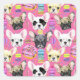 These sweet French bulldogs and French macaron cookies! Colorful print on a pink background. French Bulldogs and Rainbow French Macaron Cookies Square Sticker
