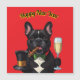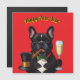 Cute black French bulldog is celebrating New Year's Eve and is having a great time at the party with a glass of champagne and a cigar. The adorable bully is wearing a beautiful black top hat and a green velvet bow tie, he looks very festive. The little dog is looking forward to the New Year's holiday. The adorable little dog wishes us a Happy New Year. Dreamy illustrations and a beautiful gift for every dog owner.