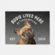 French Bulldog Personalized Dog lover welcome doormat. This welcome mat can be personalized with your dog’s name, the slogan can also be changed or you could use a picture of your own dog (make sure it's transparent). Text reads: Bodie lives here…. All treats welcome