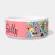 For stylish dogs, this dog bowl features a modern cartoon collage of dogs and a picture of your an French Bulldog and the dog’s name. Personalize with your pet's name - change also the font and color or add your own photo. It needs to be a head shot photo with a transparent background. Edit the design if you need to adjust the photo.