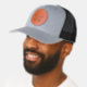 Custom Leather Patch Hat, Sytle: Adult Retro Trucker Cap, Color: Heather / Black, Shape: Circle