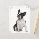 Aww...who can resist the cute face of a French Bulldog pup? This charming postcard features an image of a black and white French Bulldog puppy dog highlighted against a crisp white background. She is ready to help you send greetings to family and friends.